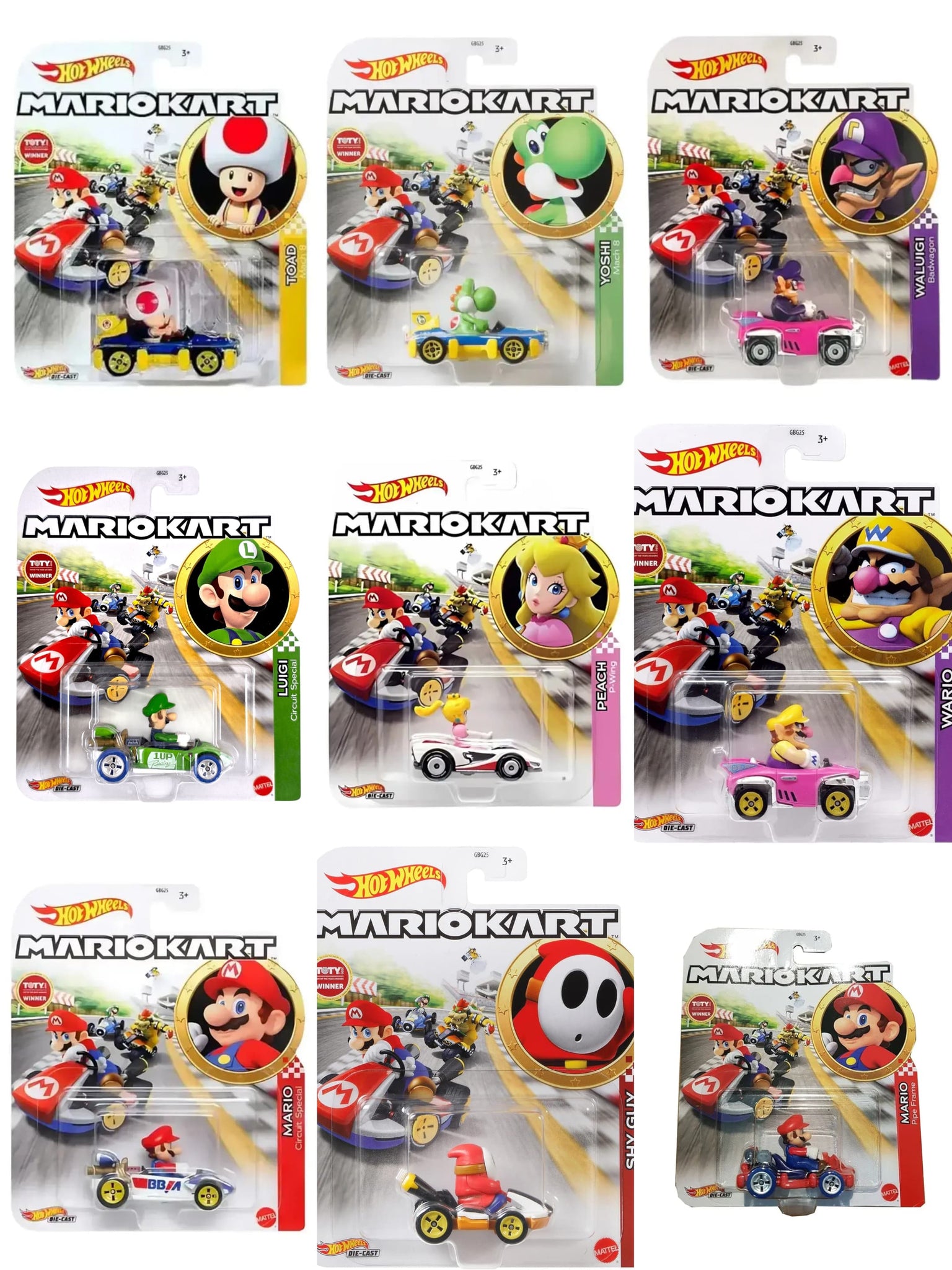 Race into fun with the Hot Wheels Mario Kart Assortment by Mattel! This exclusive set includes 8 mini die-cast cars featuring iconic Mario Kart characters and karts. Perfect for kids, collectors, and fans of the Mario franchise, each car is designed with premium detailing and authentic styling. Whether for play or display, this Mario Kart assortment is a must-have addition to your Hot Wheels or Nintendo collection.